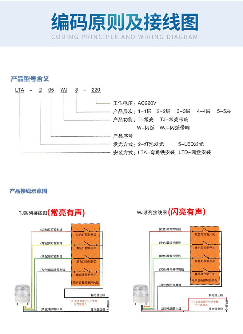 LTA-5002、LTA-5002J小型一体三色警示灯
